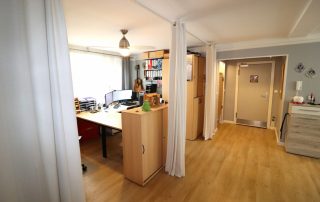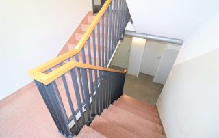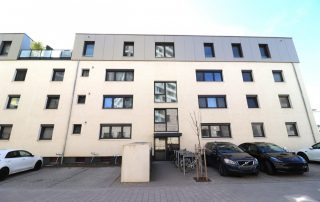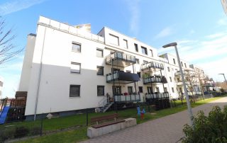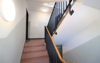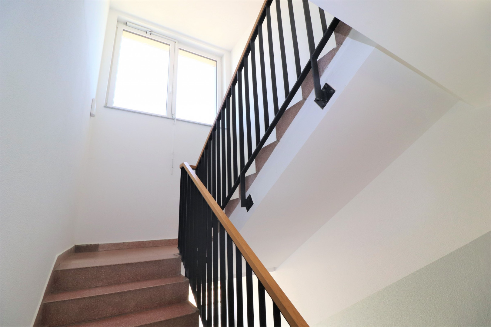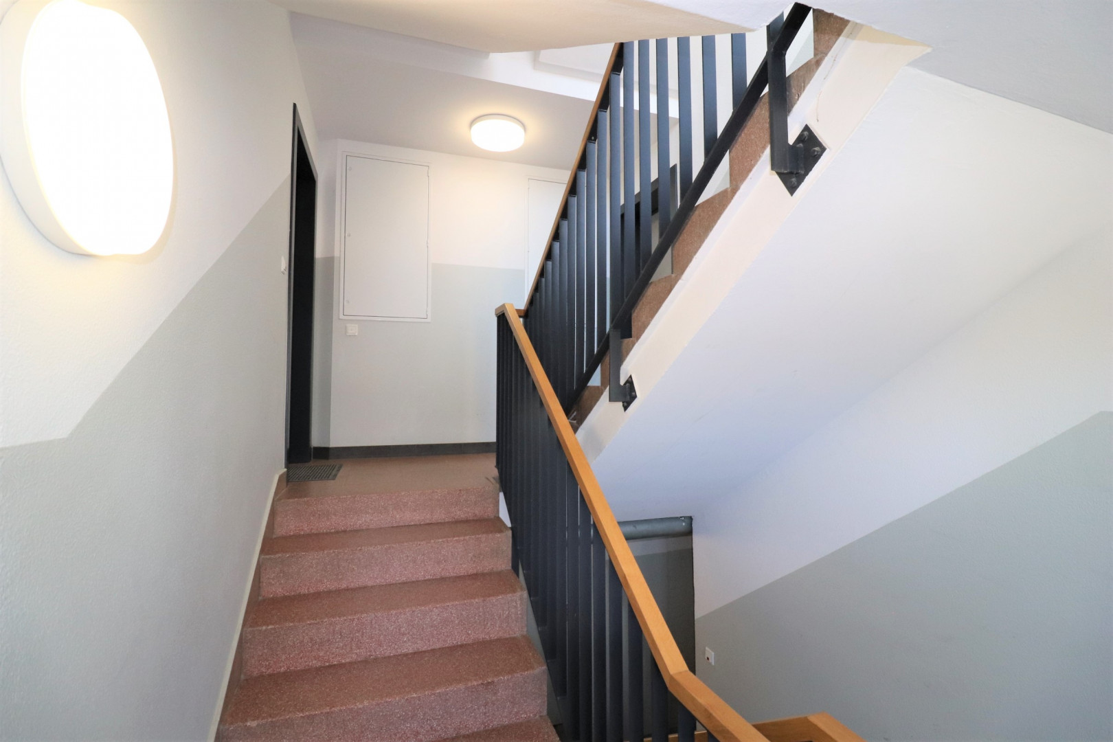 Die überaus großzügige in der ersten Etage gelegene Eigentumswohnung befindet sich im ersten von insg. drei verwaltergeführten Wohnhäusern. Pro Hauseingang sind je acht Wohneinheiten gegeben. Die Hausgemeinschaft in diesem Hauseingang überwiegt nahezu der Eigennutzung. Der gesamte Wohnkomplex wurde im Jahre 1953 errichtet, 1991 kernsaniert und im Zuge der Konversion im Jahre 2017 erneut saniert.