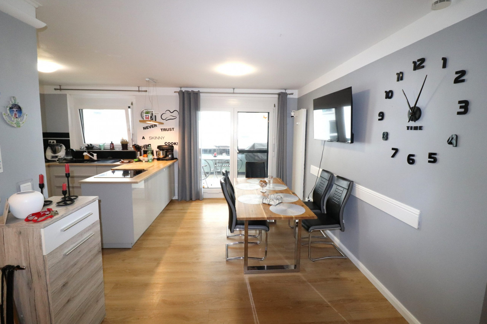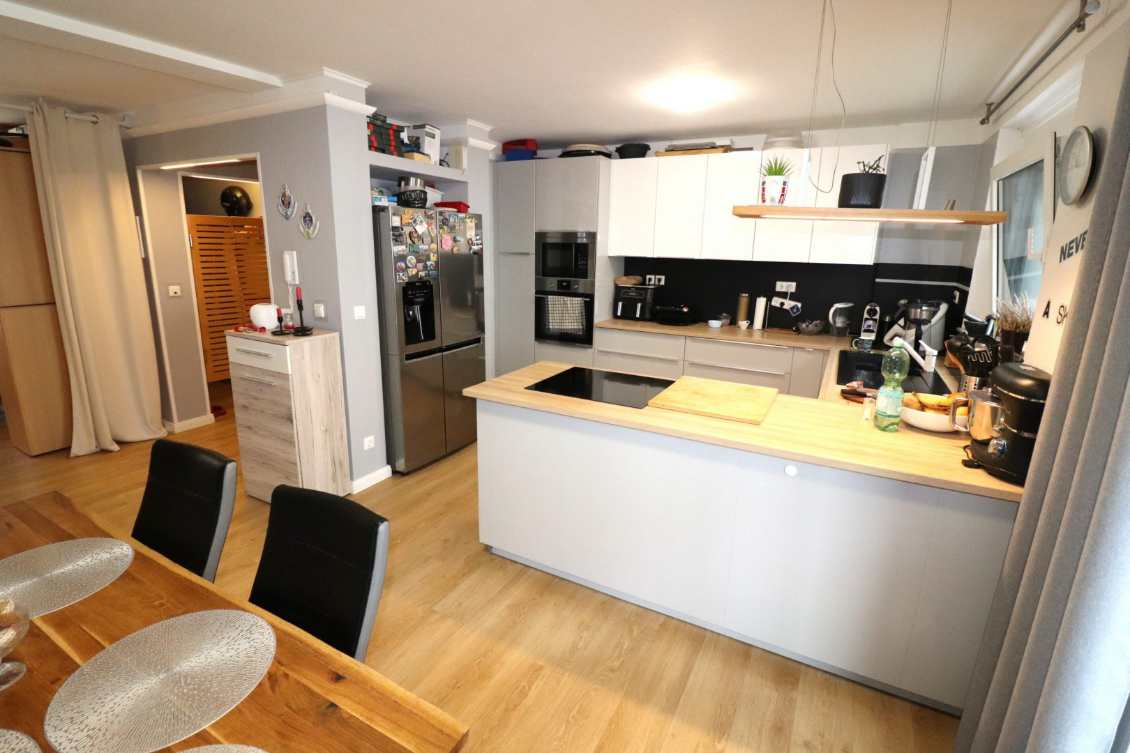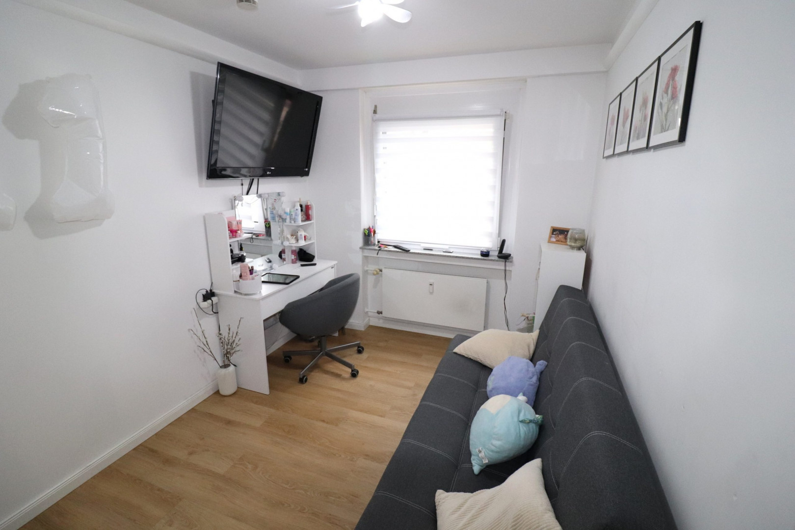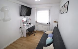 Die einheitliche und attraktive Außengestaltung sowie die Aufstockung des Wohnhauses, verleiht dem Objekt ein sehr modernes Erscheinungsbild. Vom Flurbereich aus gelangen Sie zu allen Räumen und Bädern. Auf einer beachtlichen Wohnfläche von ca. 116 m² wird hier auch einer größeren Familie hervorragender Wohnraum geboten. Die ideale Konzipierung des Grundrisses mit vier Schlafräumen ermöglicht eine funktionale Raumaufteilung. Familien mit zwei Kindern haben die Option ein Zimmer als Büro und/oder Home-Office zu nutzen. Sämtliche Wohnräume und Bäder verfügen über Fenster und bieten ein helles und freundliches Wohnambiente. Zentraler Mittelpunkt ist das offen gestaltete Wohnzimmer mit Blick zur modernen und gepflegten Küche in U-Form nebst integriertem Essbereich. Von hier aus gelangen Sie auf den Sonnenbalkon in Süd/West-Ausrichtung mit Blick auf den Quartiersplatz. Der Balkon ist mit einer manuellen Markise und einem Balkonkraftwerk ausgestattet. Im Eingangsbereich wurde ein offener wohnungsinterner Abstellraum generiert. Ein besonderes Augenmerk dieser Immobilie sind die beiden Tageslicht Bäder. Das Hauptbadezimmer verfügt über eine Badewanne mit Duschglas, Wand-WC, modernem Badmobiliar und befindet sich am Ende des Flur-Bereiches. Das zweite Bad gliedert sich an das Schlafzimmer an und wurde derweil als HWR-Raum ohne ergänzende Duschkabine genutzt. Ein Wand-WC, Bidet und Waschmaschinenanschluss sind gegeben. Die Installation einer Dusche ist jederzeit möglich. Beide Sanitärräume wurden ergänzend mit einer elektrischen Belüftung ausgestattet. In der Wohnung wurden die damaligen Einbauschränke beibehalten und schaffen hier noch mehr diskreten Raum für Aufbewahrungen. Ausreichend Stauraum bieten gleich zwei eigene Kellerräume. Beide Kellerräume verfügen über ein Fenster, Strom & Leuchte. Gemeinschaftlich genutzte Räume in diesem Objekt sind zwei Fahrradkeller. Die Eigentümergemeinschaft dieses Wohnkomplexes hat ebenso Miteigentumsanteile an dem rückwärtig gelegenen „Quartiersplatz“. Dieser wurde sehr pflegleicht angelegt und bietet eine Spielfläche für Kinder. Ein eigener PKW-Stellplatz mit Wallbox-Ladestation direkt am Hauseingang rundet dieses Immobilienangebot ab.