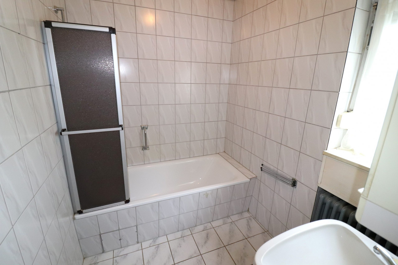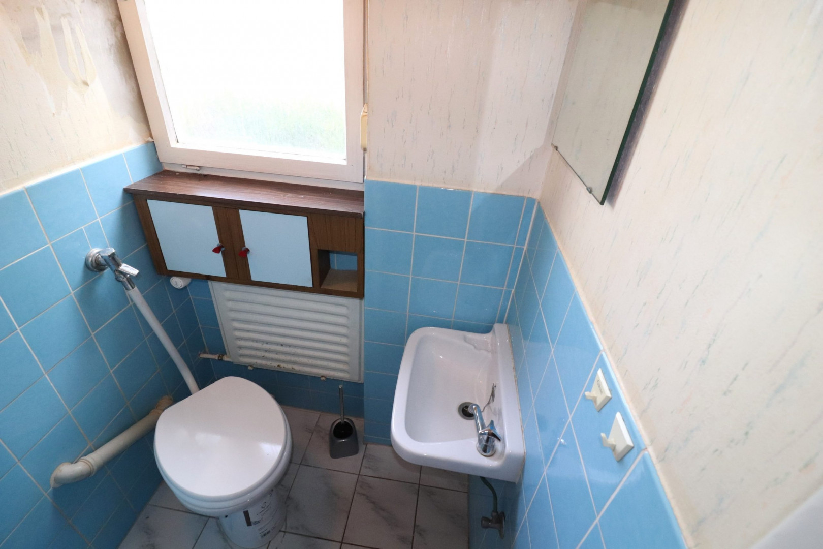 - Tageslicht WC im EG, Stand-WC, halbhoch gefliest