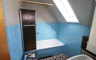 - Tageslicht Bad im OG mit Badewanne & Waschtisch, halbhoch gefliest