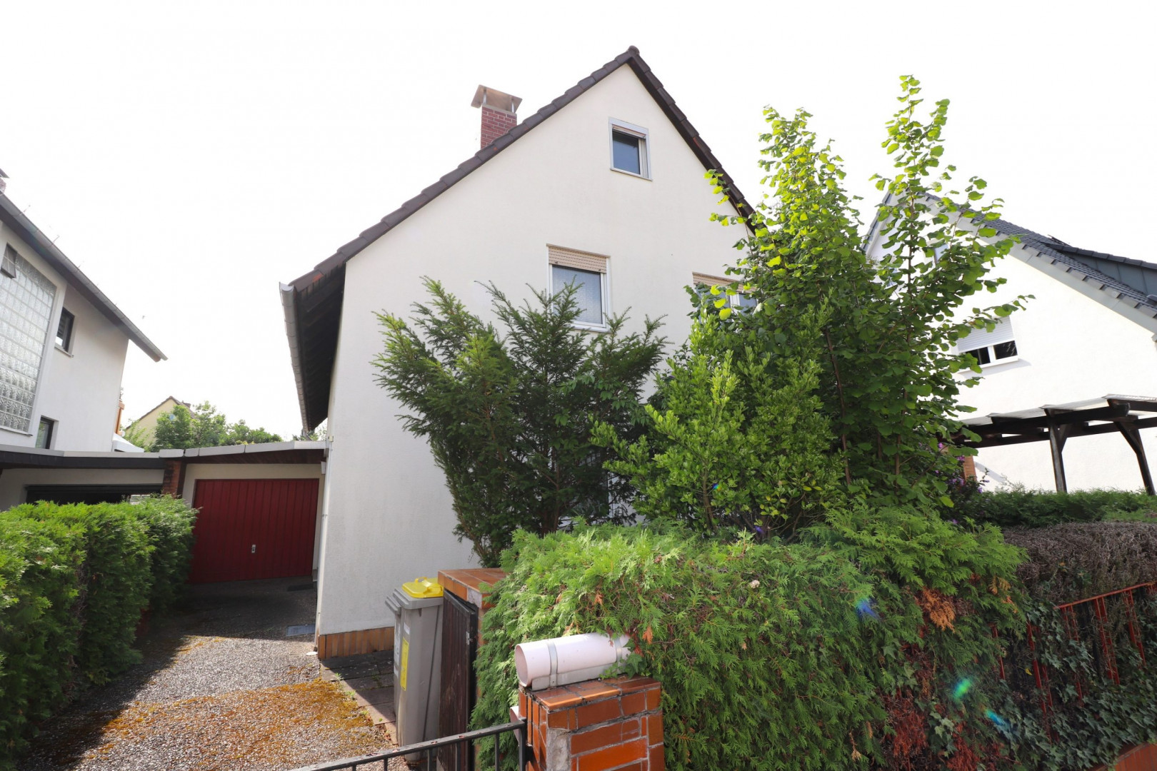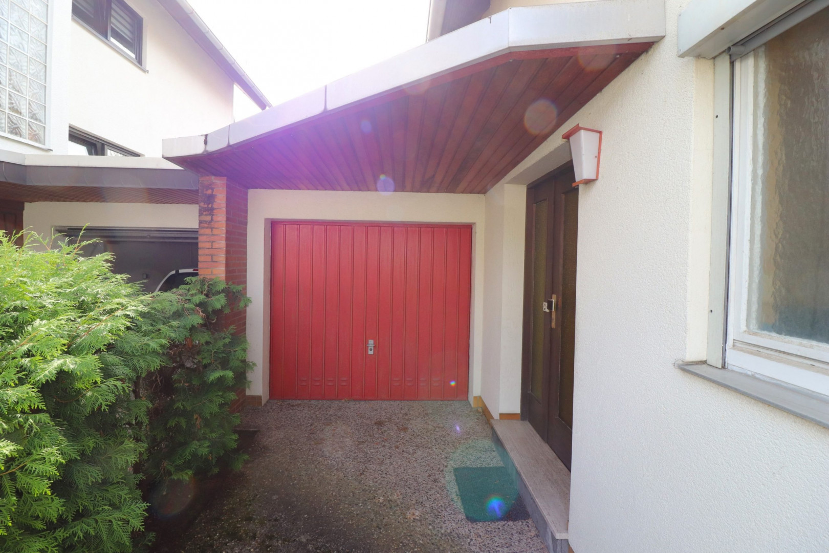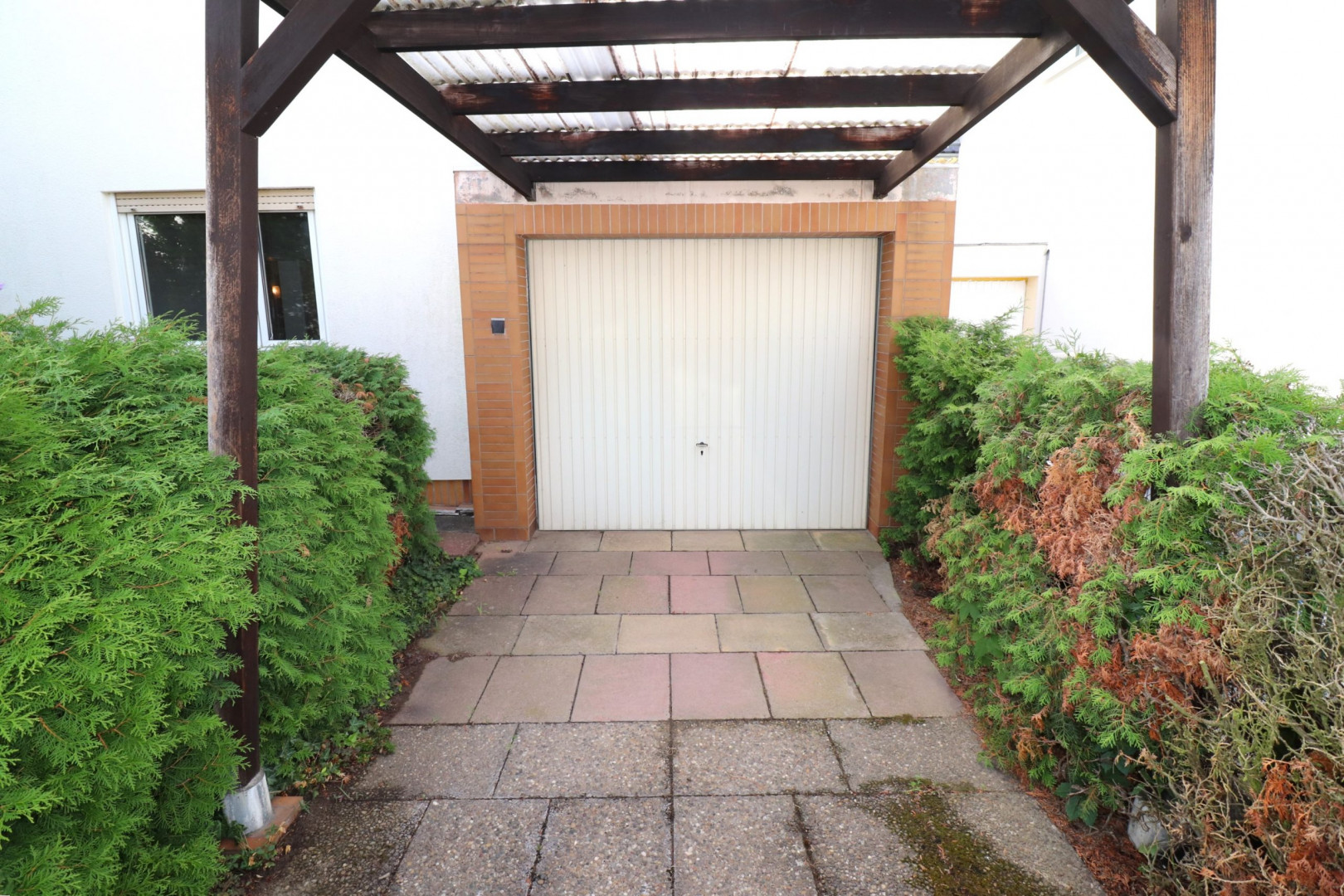 Beide Einzelgaragen sind mit einem Vordach ausgestattet, bieten vorgelagert je einen PKW-Stellplatz und verfügen über zusätzliche Eingangstüren im rückwärtigen Gartenbereich.