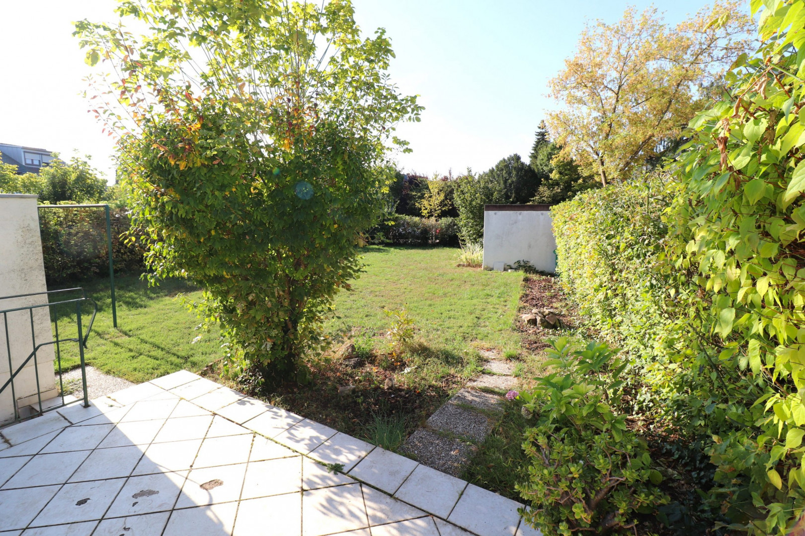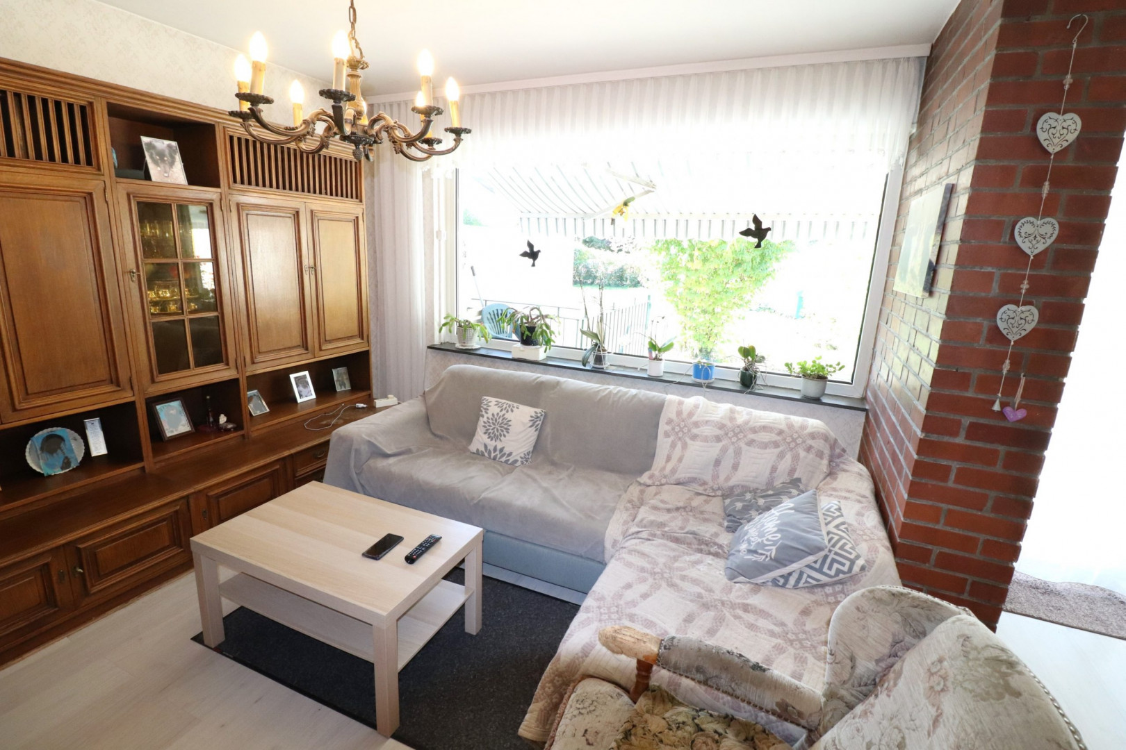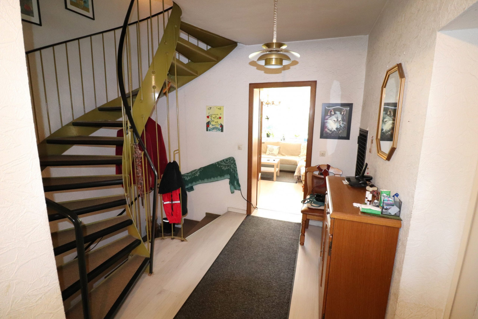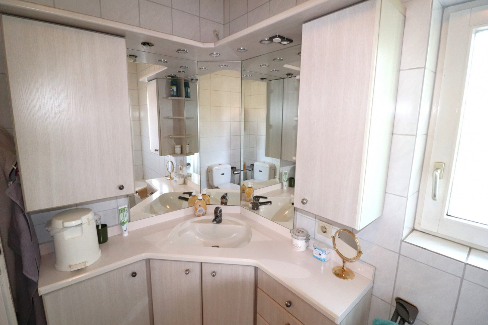 Die Terrasse ist mit einer großflächigen elektrischen Markise ausgestattet. Eine Einzelgarage befindet sich auf dem Grundstück und ermöglicht per Seitentür einen direkten Zugang vom Gartenbereich.