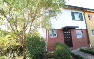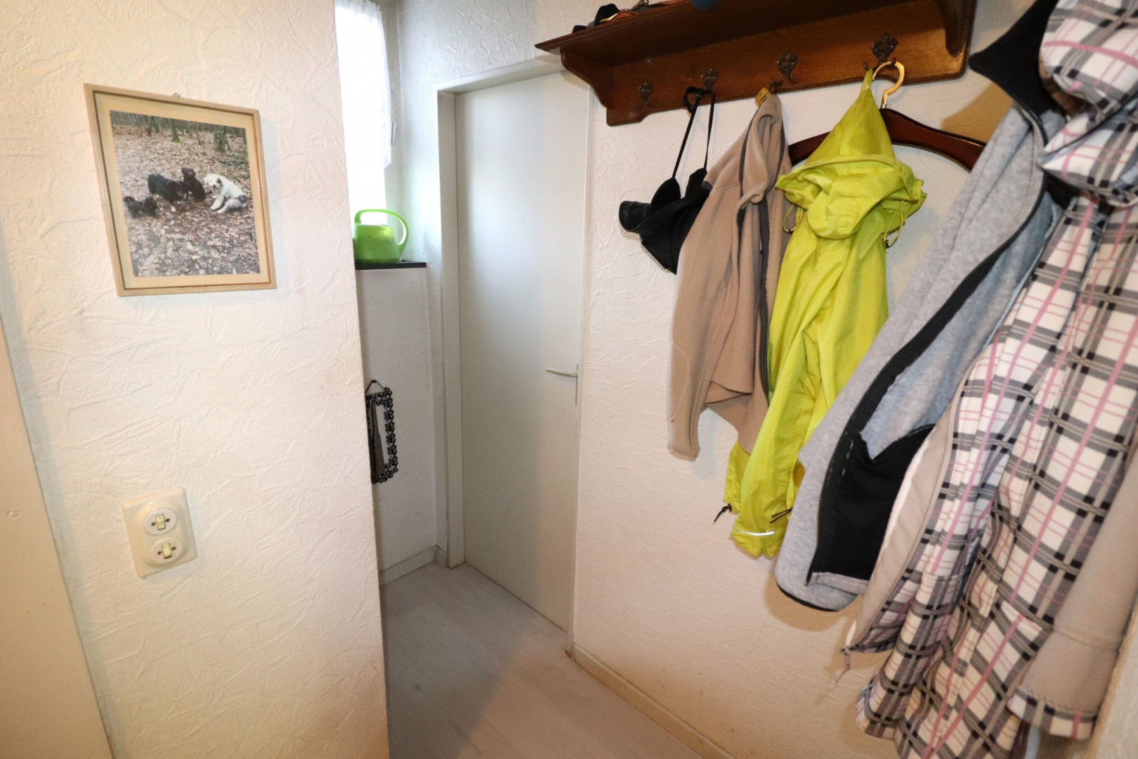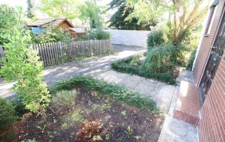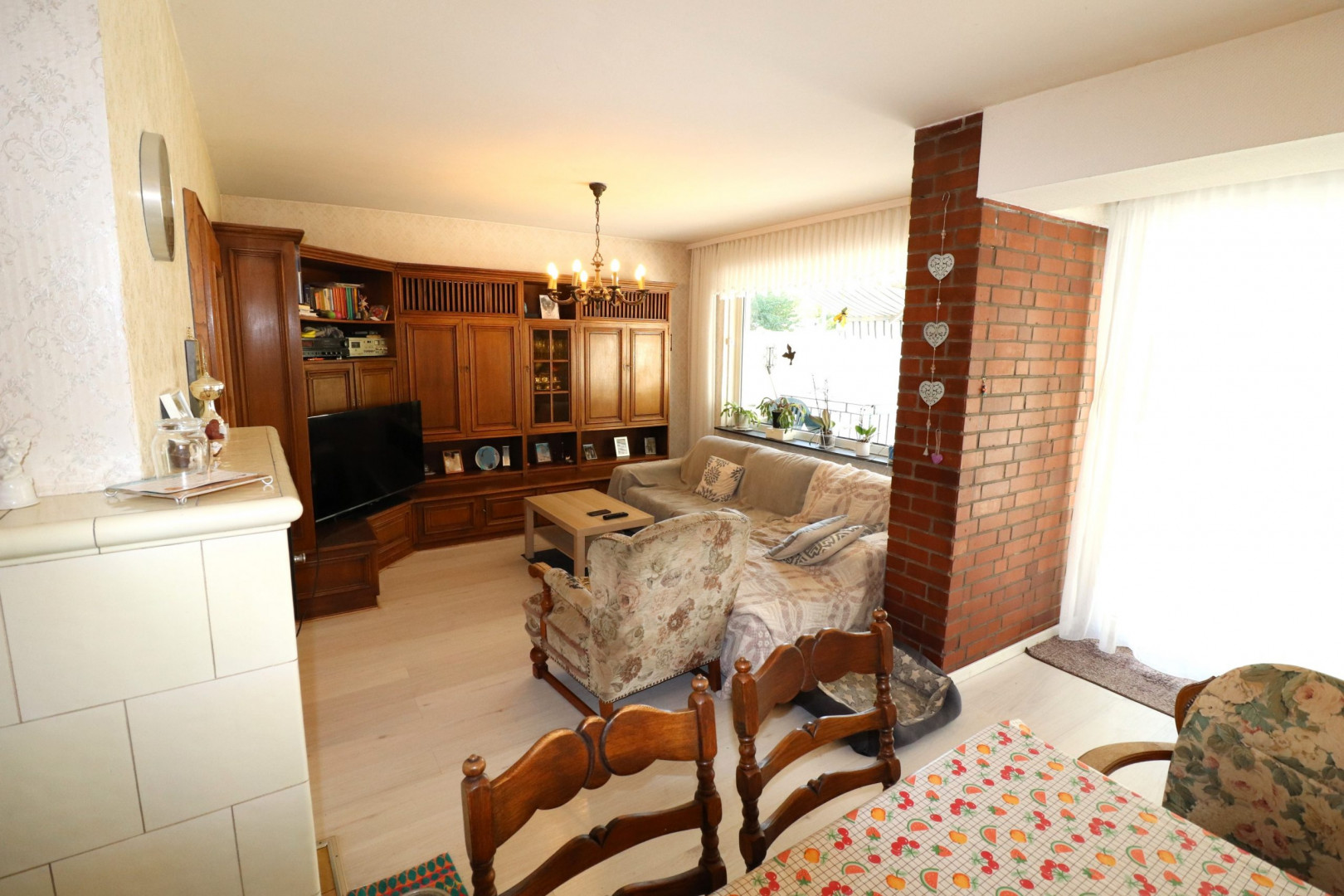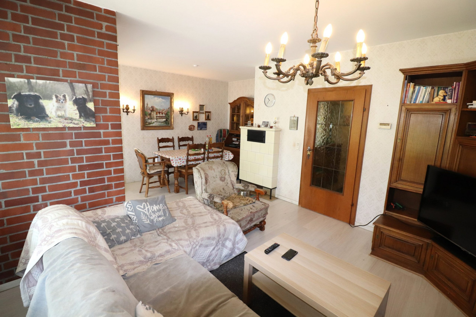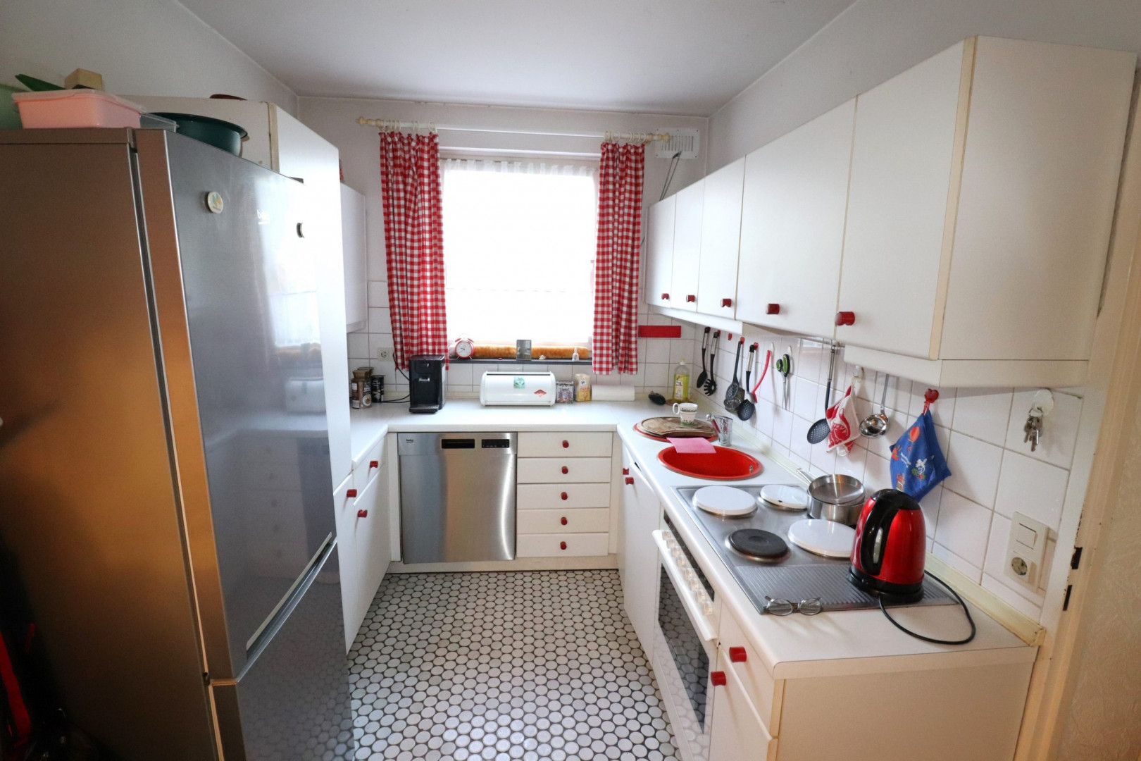 Die Terrasse ist mit einer großflächigen elektrischen Markise ausgestattet. Eine Einzelgarage befindet sich auf dem Grundstück und ermöglicht per Seitentür einen direkten Zugang vom Gartenbereich.