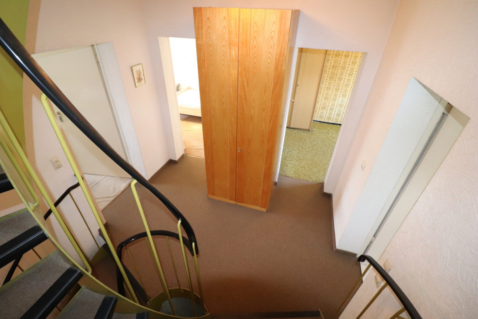 Das familienfreundliche Einfamilien-Reihenendhaus aus dem Jahre 1962 befindet sich in einer verkehrsberuhigten Seitenstraße ohne Durchgangsverkehr. Die nähere Umgebung ist ausschließlich von Wohnhäusern adäquater Bauweisen geprägt, welche typisch für diesen Teil der Wohnsiedlung sind. Im Zufahrtsweg selbst finden sich insg. fünf Hauseingänge. Sämtliche Einfamilienhäuser in der „Kirchwaldsiedlung“ wurden seinerzeit in Massivbauweise durch die gemeinnützigen Hilfswerke der evangelischen Kirche errichtet. Die Grundstücksgröße beträgt 485 m². Das REH unterteilt sich in EG, OG, DG und KG. Die reine Wohnfläche beträgt ca. 118 m². Die Raumaufteilung im EG umfasst einen großen Wohn/Essbereich, Küche, Flur, Vorraum und ein TGL-WC. Die gelungene Aufteilung dieses Objektes bietet Familien mit Kindern ausreichend Raum zum Wohlfühlen und Entfalten. Vom großzügigen und lichtdurchfluteten Wohn-Essbereich aus gelangen Sie auf die Terrasse mit großem Garten in südwestlicher Ausrichtung. Im OG befinden sich drei Schlafräume sowie das Badezimmer mit Tageslicht. Der Balkon ist von zwei Schlafräumen aus begehbar. Das ausgebaute DG ist offengehalten und bietet eine Vielzahl an Nutzungsmöglichkeiten. Die aktuelle Nutzung fungiert als Gästebereich. Die Bodenbeläge sind überwiegend in einem einfachen Standard gehalten und variieren von diversen Fliesen, Teppich und Laminat. Im KG befinden sich ein HWR, zwei Kellerräume, ein Vorratsraum sowie der Tankraum. Hier findet sich ein ausgedehnter Platz für die Aufbewahrung aller wohnüblichen Gegenstände nebst Lebensmitteln. Der Zugang zum KG ist hausintern als auch über die Peripherie gegeben.