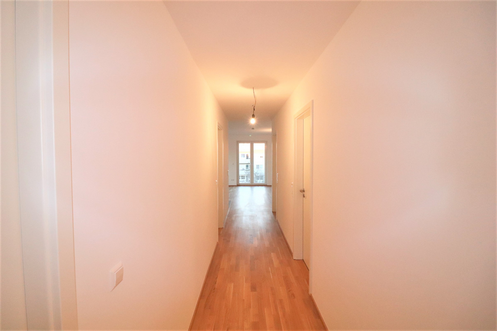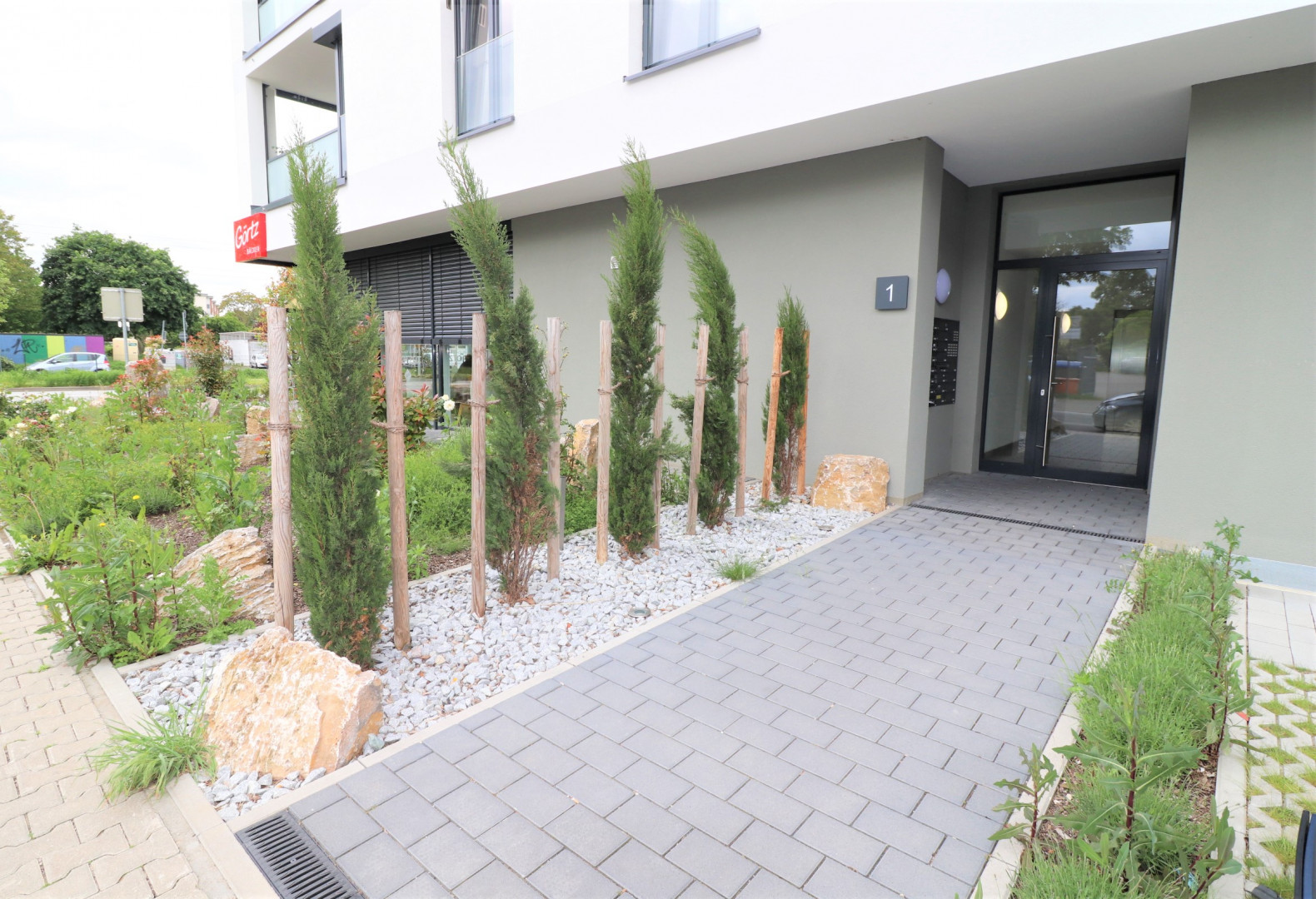 Diese ca. 87 m² große, exklusive und moderne 3 ZKB-Wohnung befindet sich im 3. OG des im Jahre 2021 errichteten Wohn- und Geschäftshauses „Anemonenweg 1“. Die Objekte des renommierten Bauträgers zeichnen sich durch eine moderne und nachhaltige Bauweise, hohe Qualitätsstandards, neuester Energieeffizienz sowie sozialen Rahmenbedingungen aus. Im Haus selbst finden sich insg. 28 Wohneinheiten auf vier Etagen sowie den im EG gelegenen Bäckerbetrieb mit Außenbestuhlung. Über den Personenaufzug gelangen Sie barrierefrei zu den jeweiligen Wohneinheiten. Die stylische und geräumige Dreiraumwohnung besticht durch eine überaus effiziente Raumaufteilung. Zentraler Mittelpunkt bildet der offen gestaltete Wohnküchenbereich. Bodentiefe Fenster unterstreichen das hervorragende Wohnklima. Das moderne innenliegende Bad ist mit einer Badewanne sowie einer niveaugleichen Dusche ausgestattet. Im separaten Gäste-WC wurde der Waschmaschinenanschluss integriert. Die an die Wohnküche angegliederte überdachte Loggia liegt in nordwestlicher Ausrichtung. Blickdichte Glasfronten in der Loggia ermöglichen ausreichenden Sichtschutz für einen angenehmen Komfort. Ein kleiner Abstellraum bietet Platz für haushaltsübliche Utensilien. Weiteren Stauraum finden Sie im eigenen Keller. Im Außenbereich steht den Objektbewohnern ein abschließbarer Fahrradabstellraum zur Verfügung. Ein überdachter PKW-Stellplatz mit direktem Objektzugang rundet dieses umfassende Mietangebot ab.