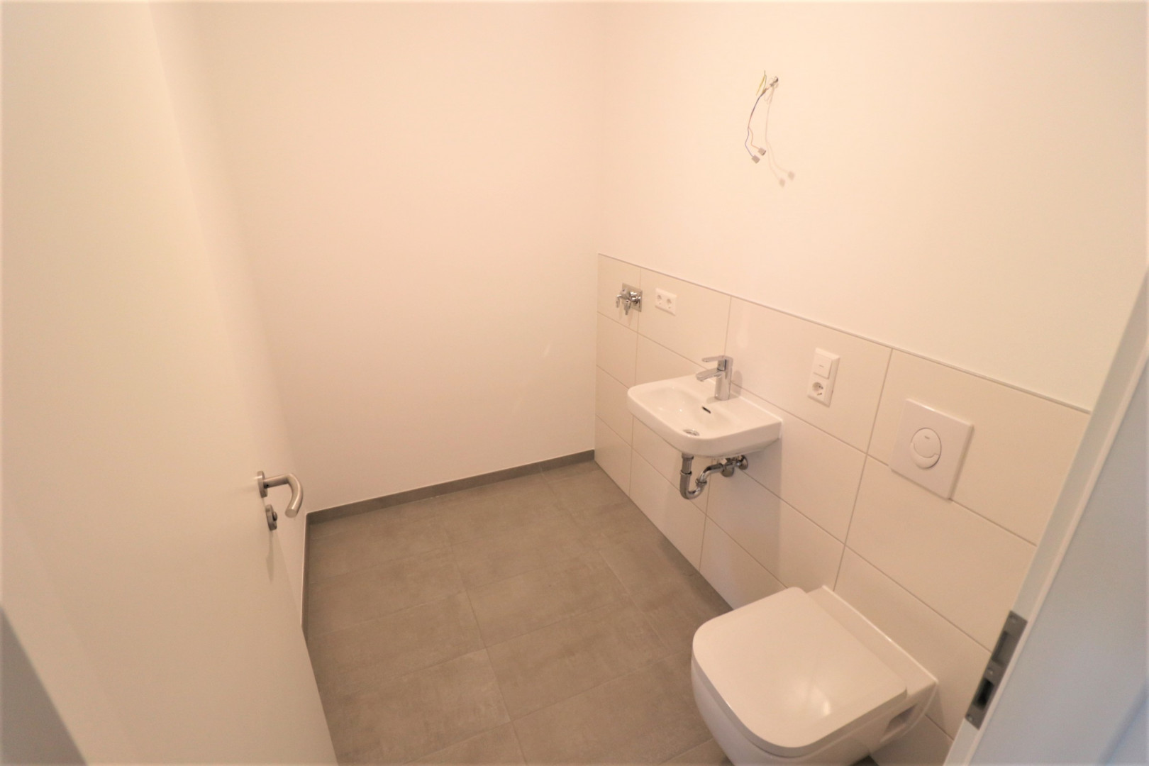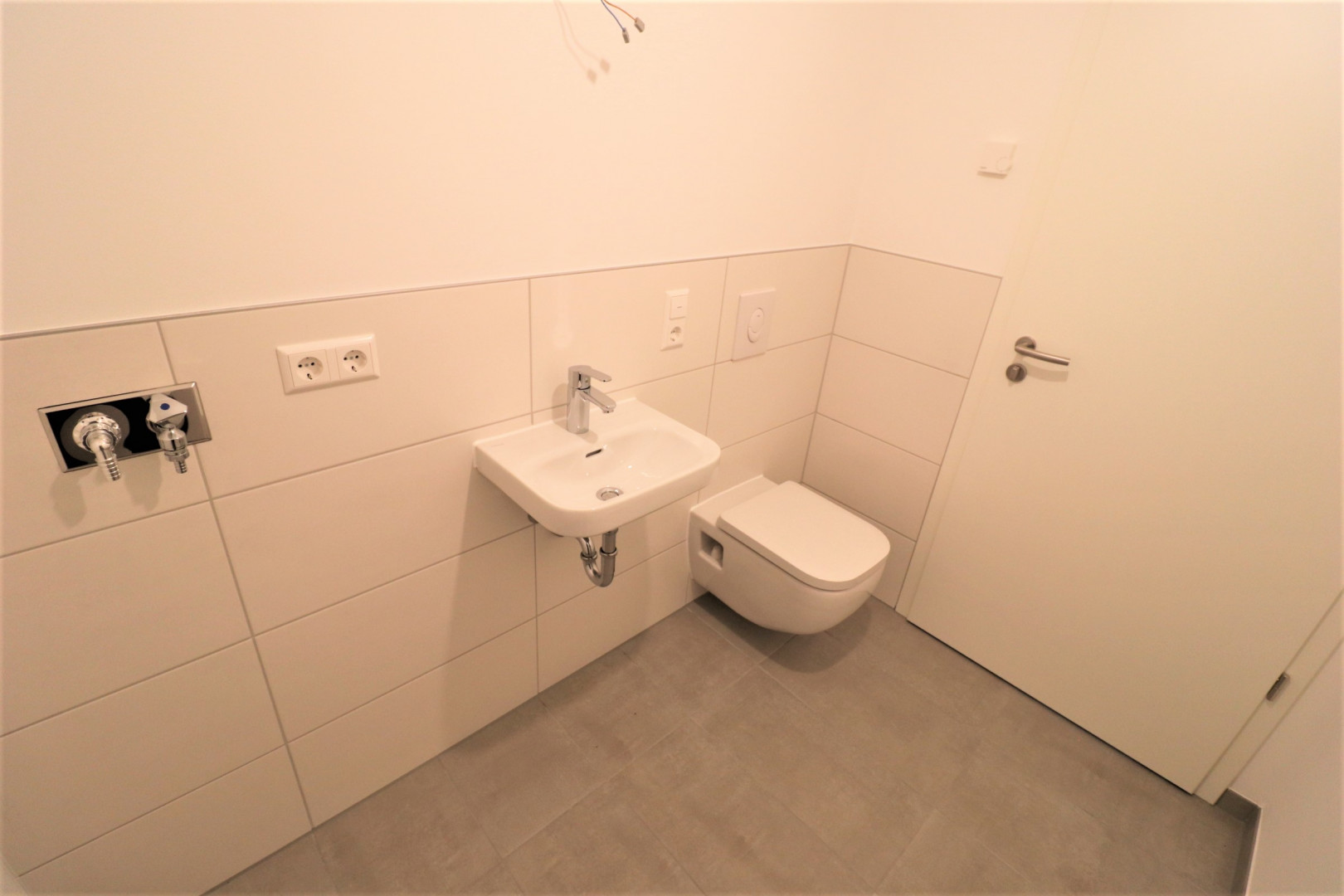 • Innenliegendes Gäste-WC, Waschtisch, Wand-WC, Fliesen im Nassbereich
