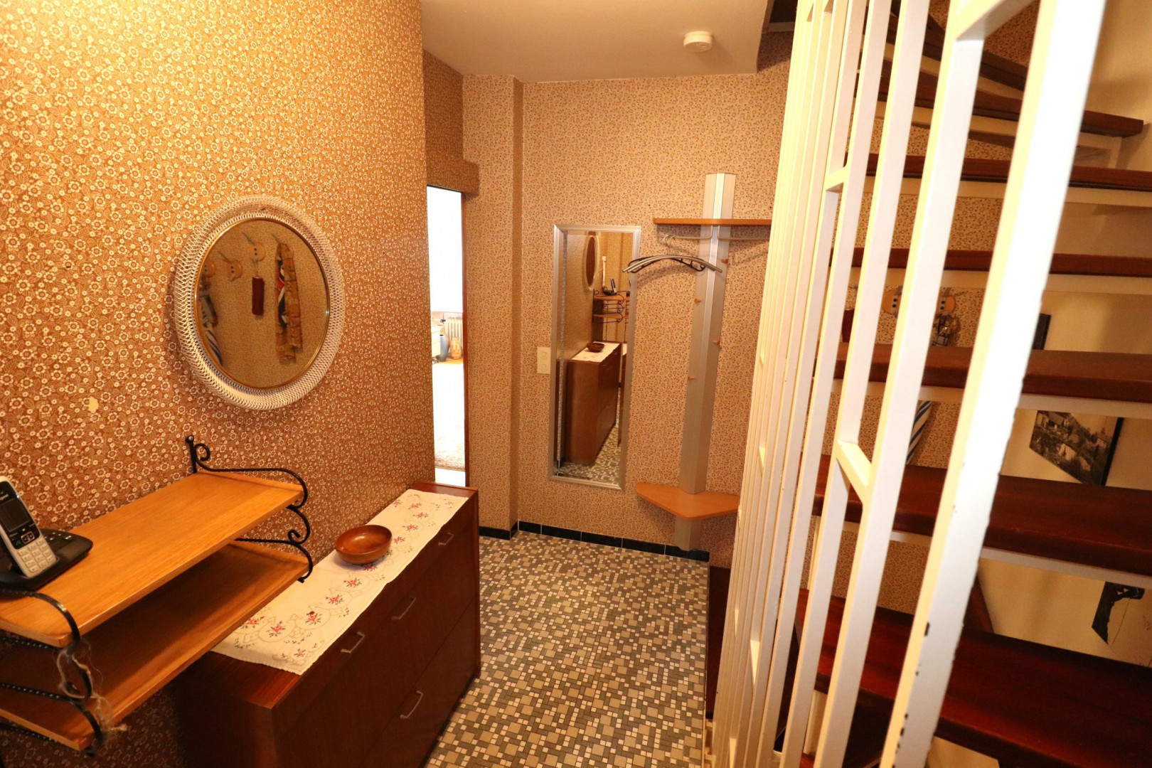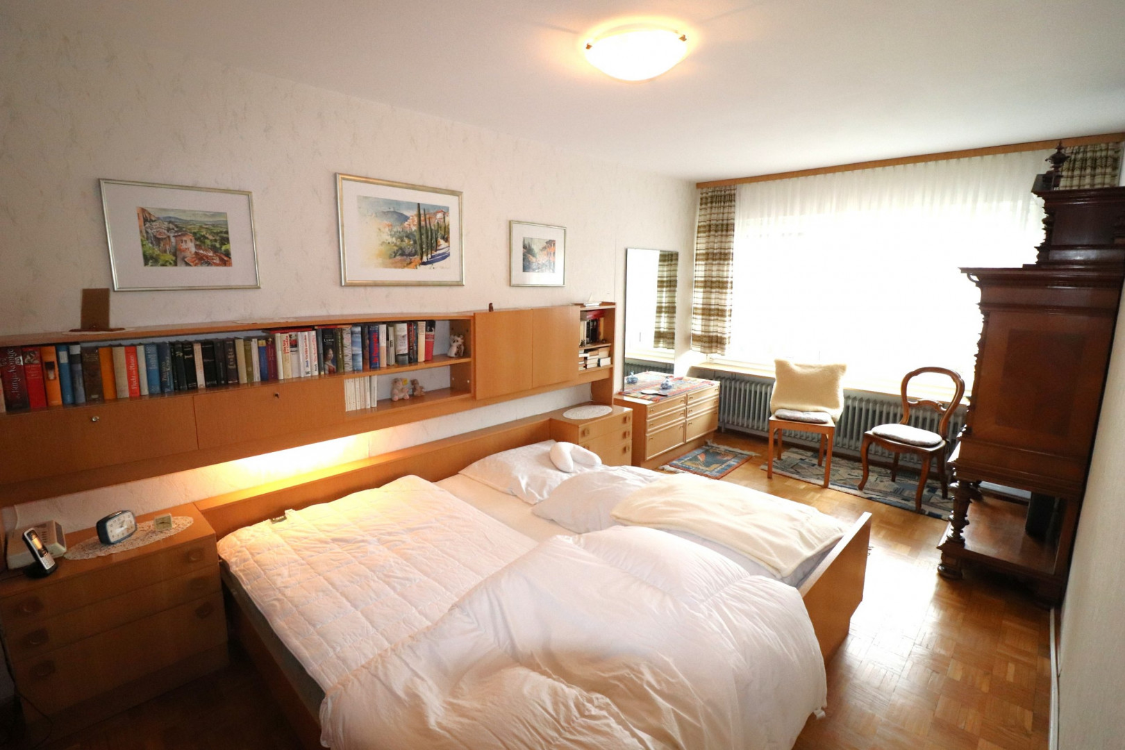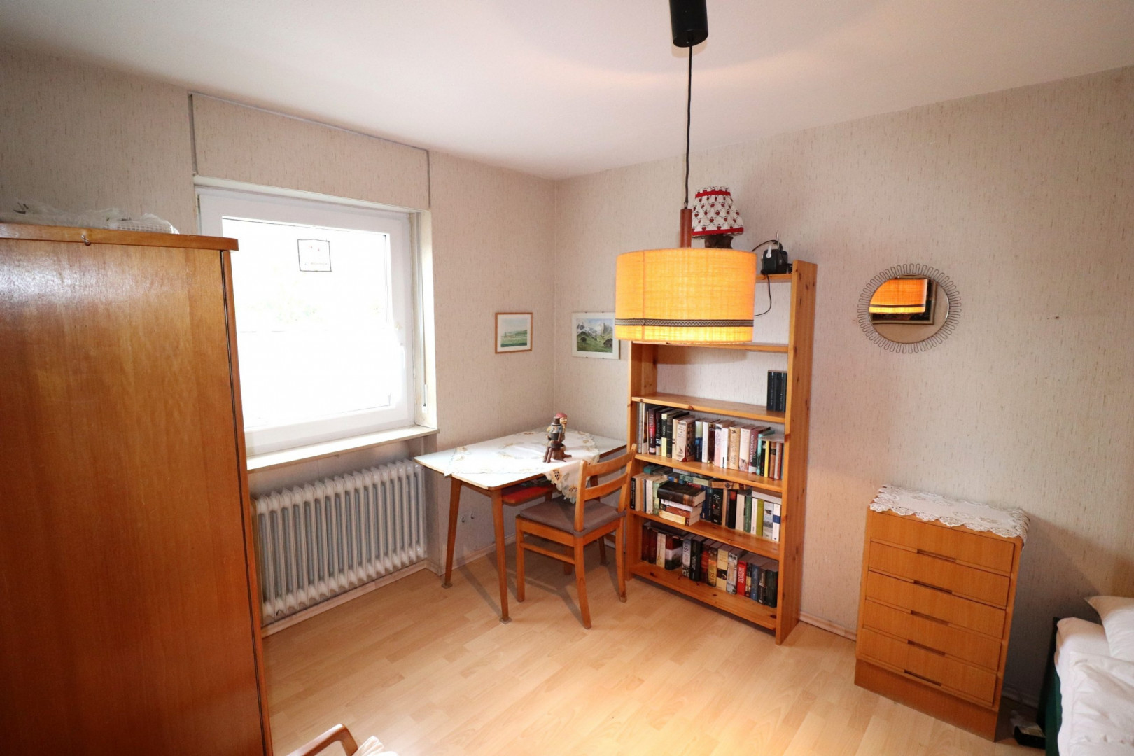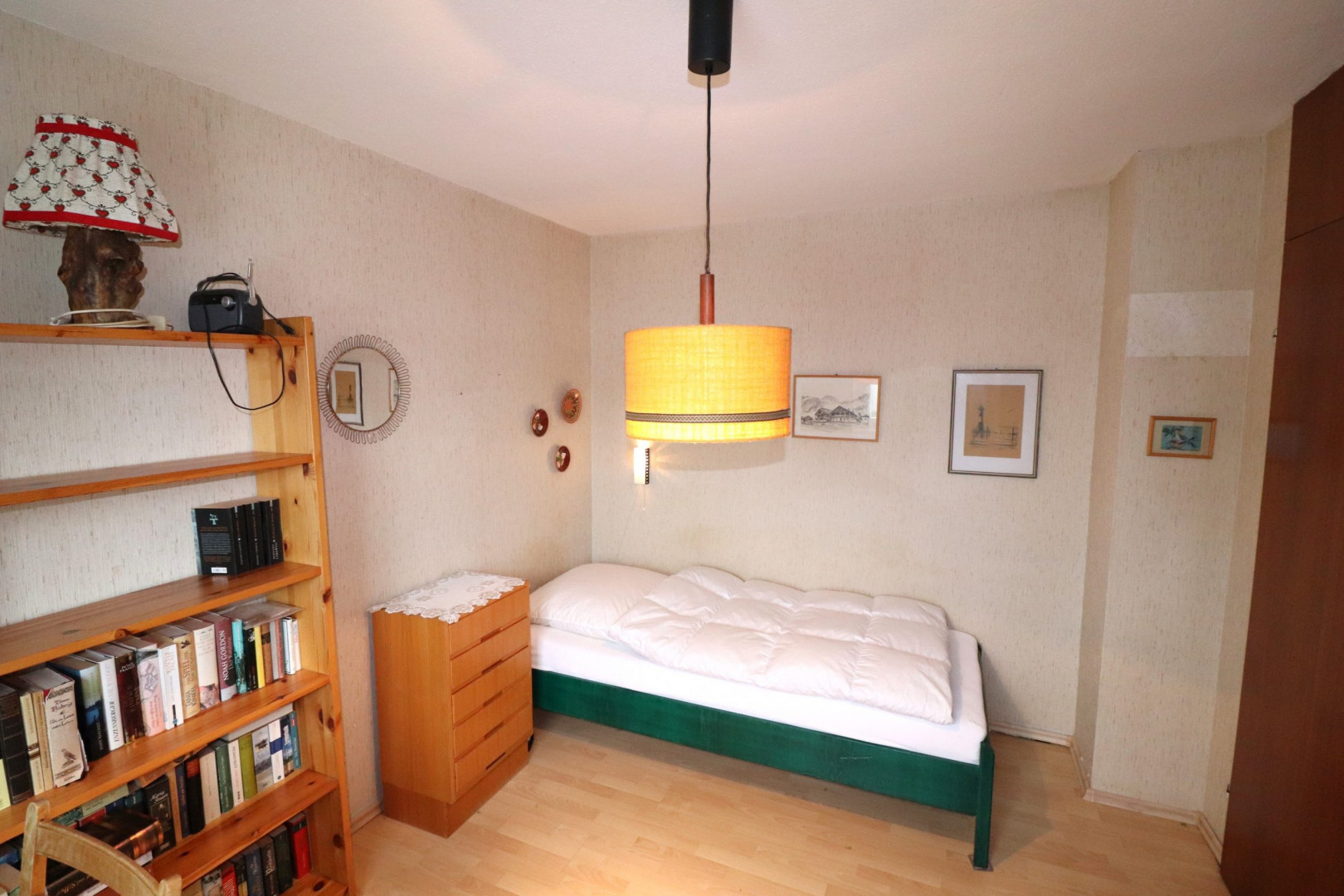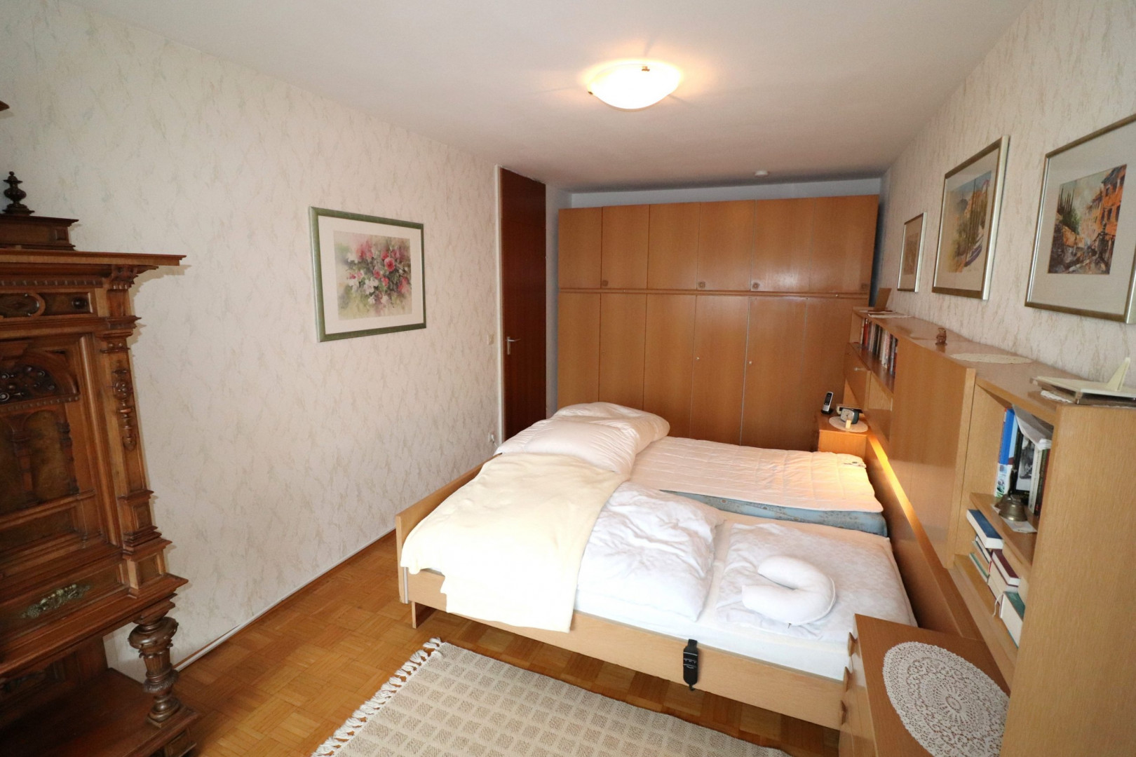 - Innenwandbeläge: Feinputz, tapeziert und gestrichen, teilweise Holzvertäfelung